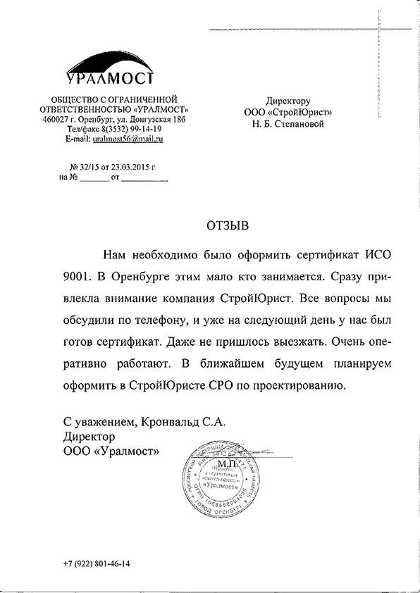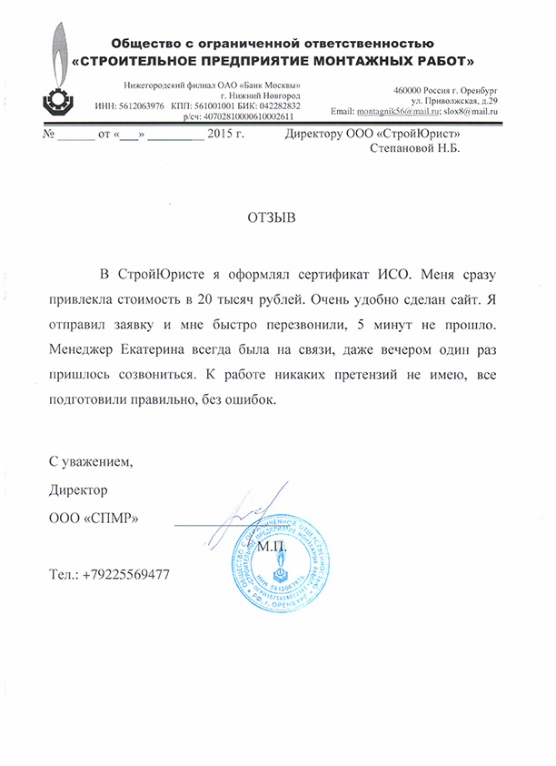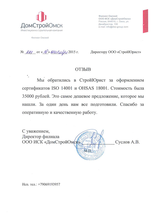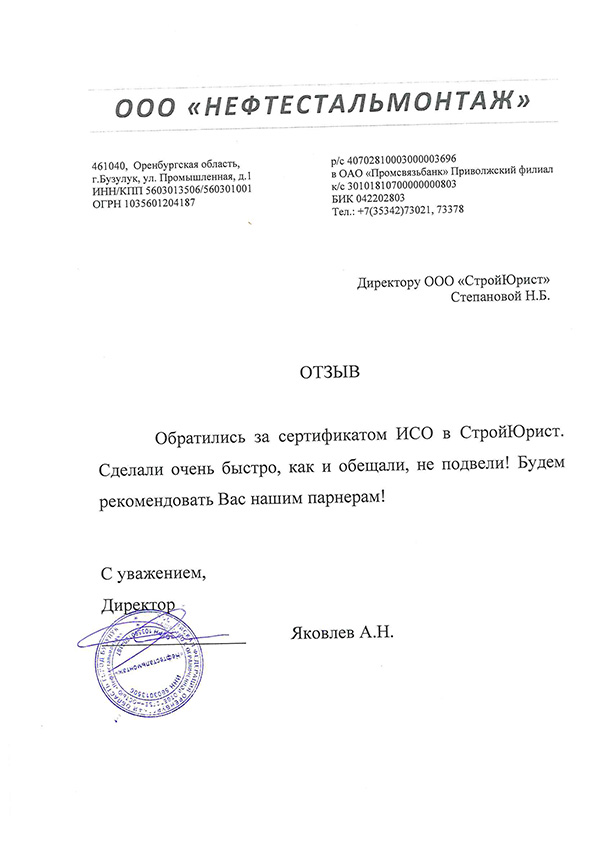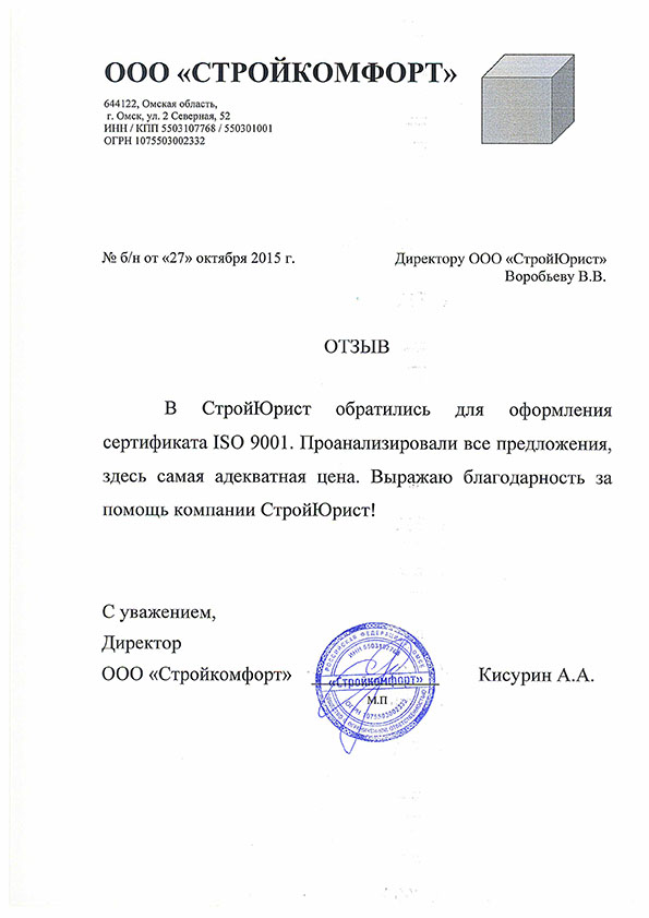 Отзывы клиентов "СтройЮрист" по ISO в Севастополе