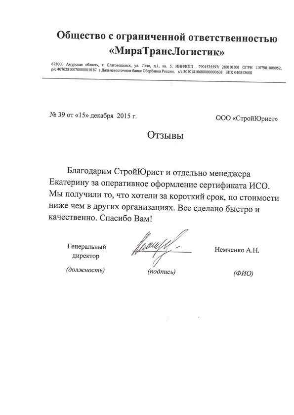 Отзывы клиентов "СтройЮрист" по ISO в Севастополе