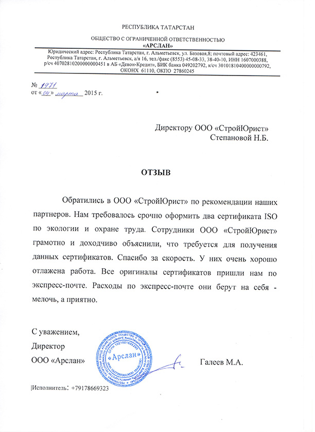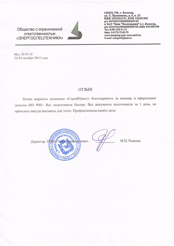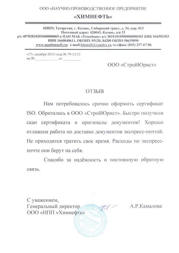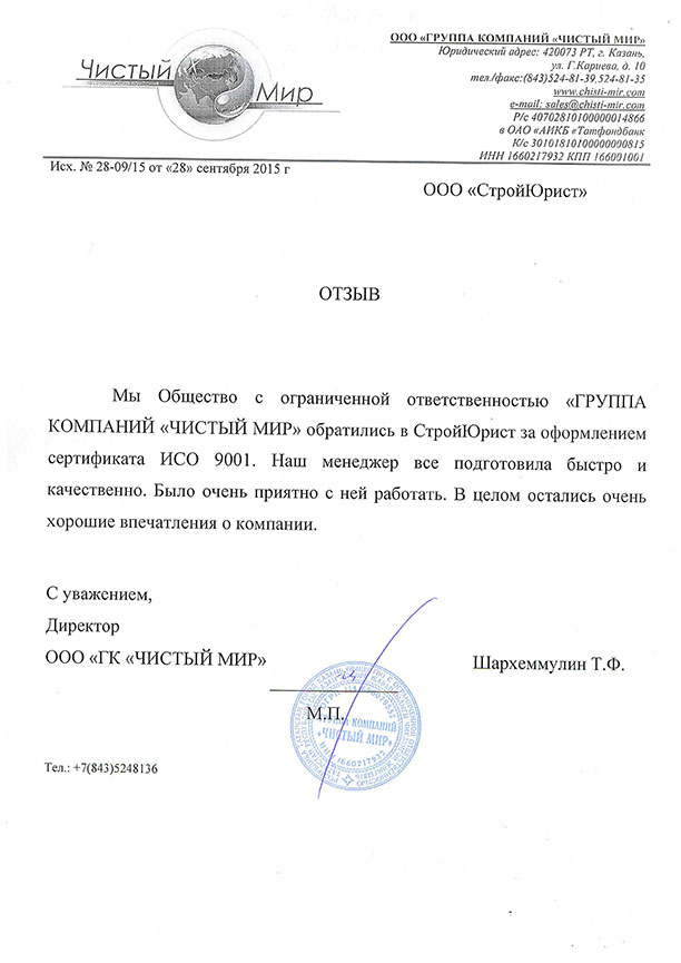 Отзывы клиентов "СтройЮрист" по ISO в Севастополе