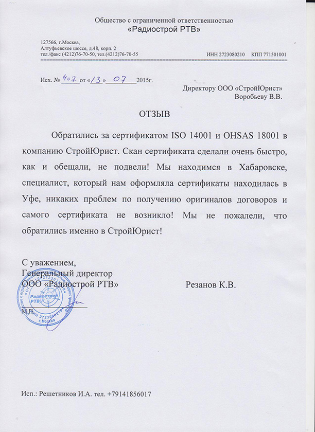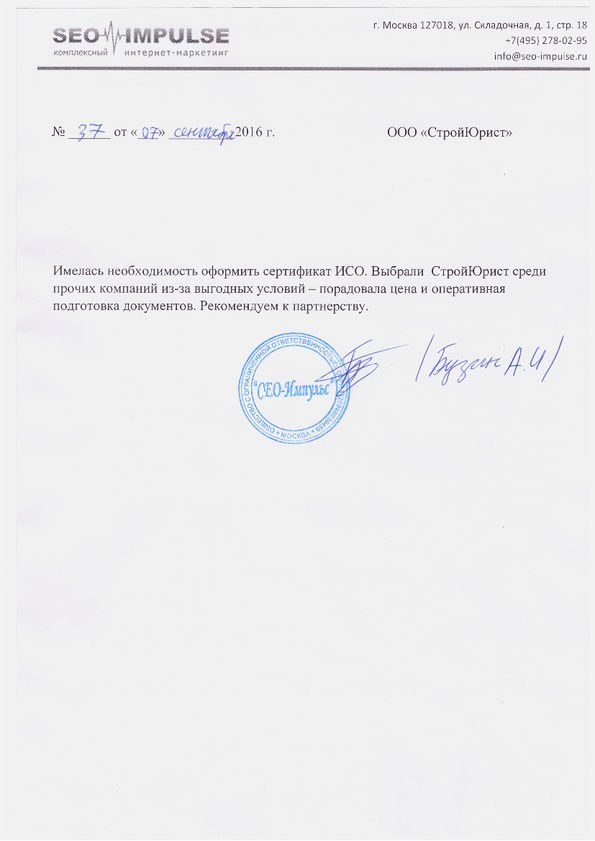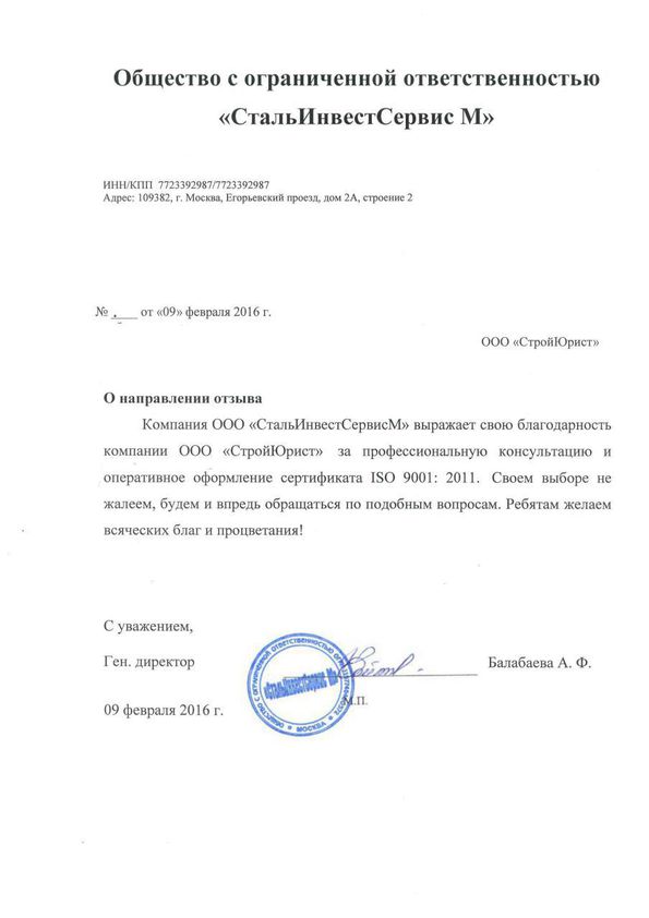 Отзывы клиентов "СтройЮрист" по ISO в Севастополе