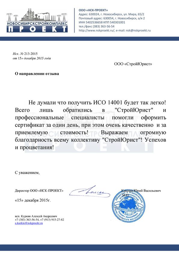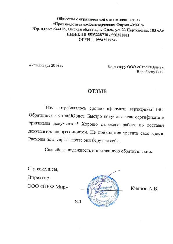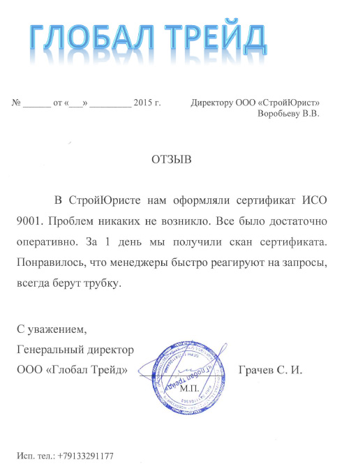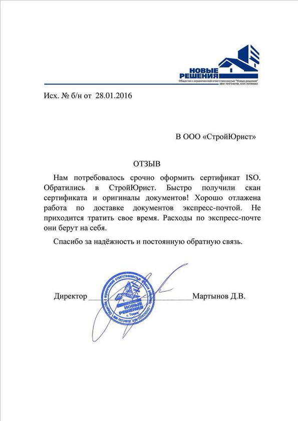 Отзывы клиентов "СтройЮрист" по ISO в Севастополе