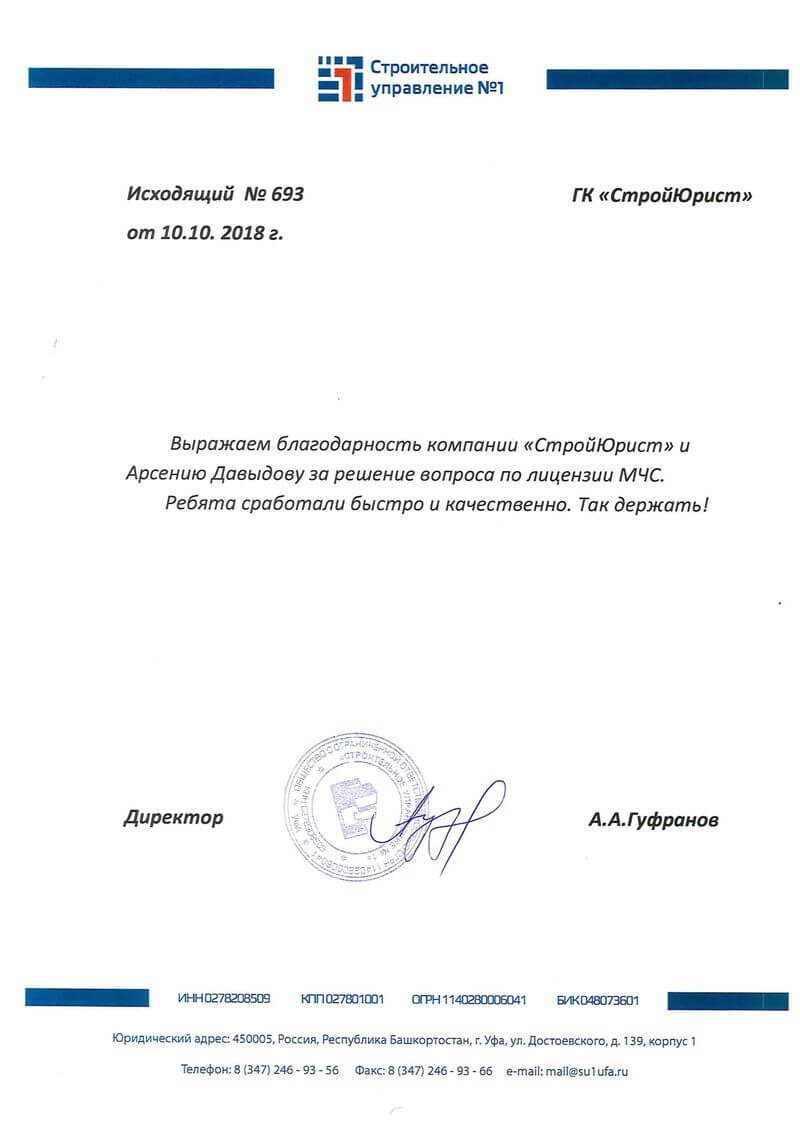 Отзывы клиентов "СтройЮрист" по лицензированию МЧС в Севастополе