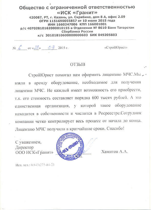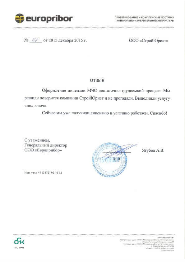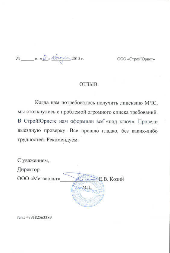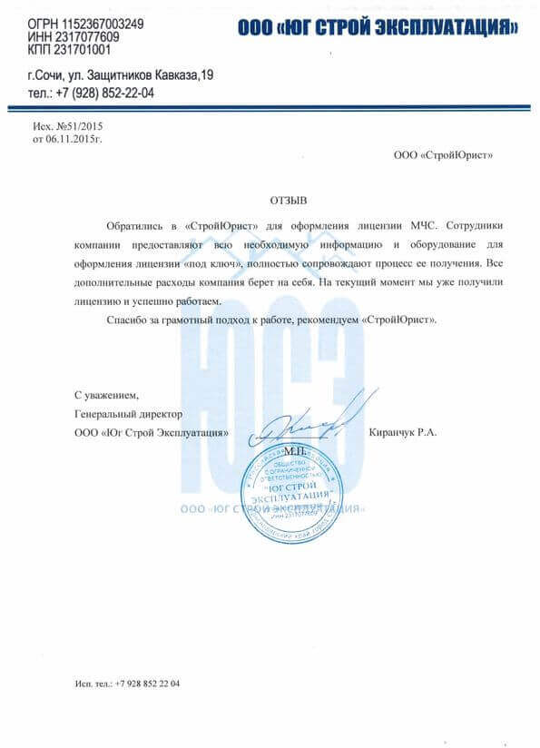 Отзывы клиентов "СтройЮрист" по лицензированию МЧС в Севастополе