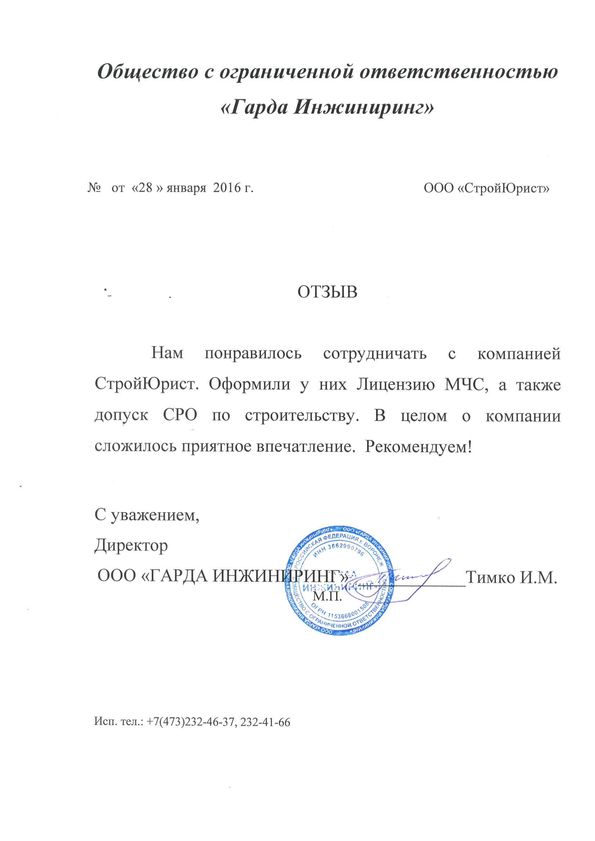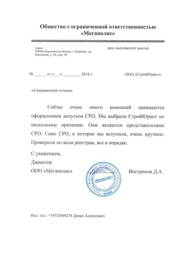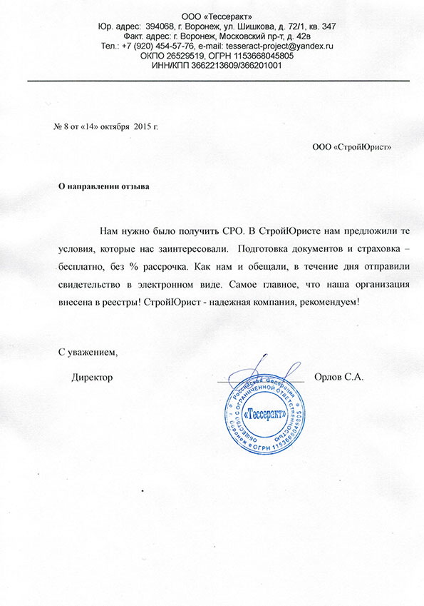 Отзывы клиентов "СтройЮрист" по вступлению в СРО в Севастополе