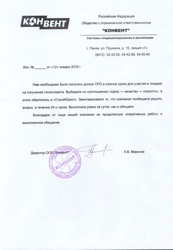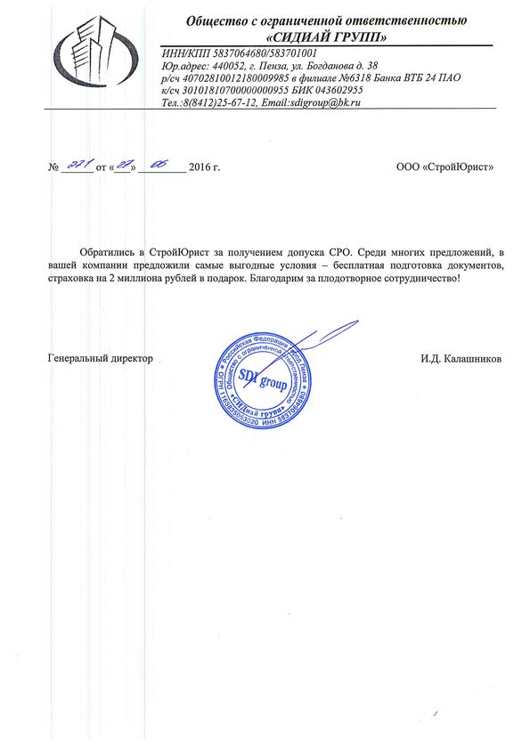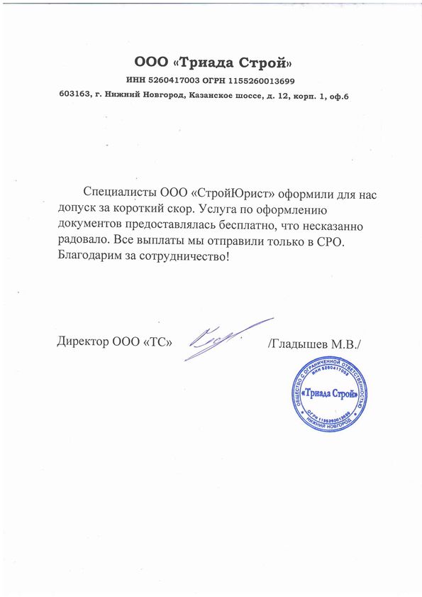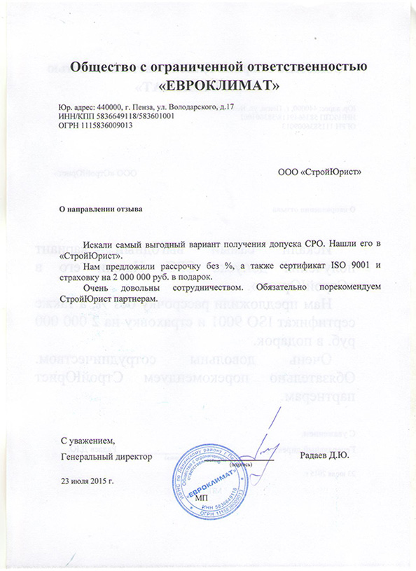 Отзывы клиентов "СтройЮрист" по вступлению в СРО в Севастополе