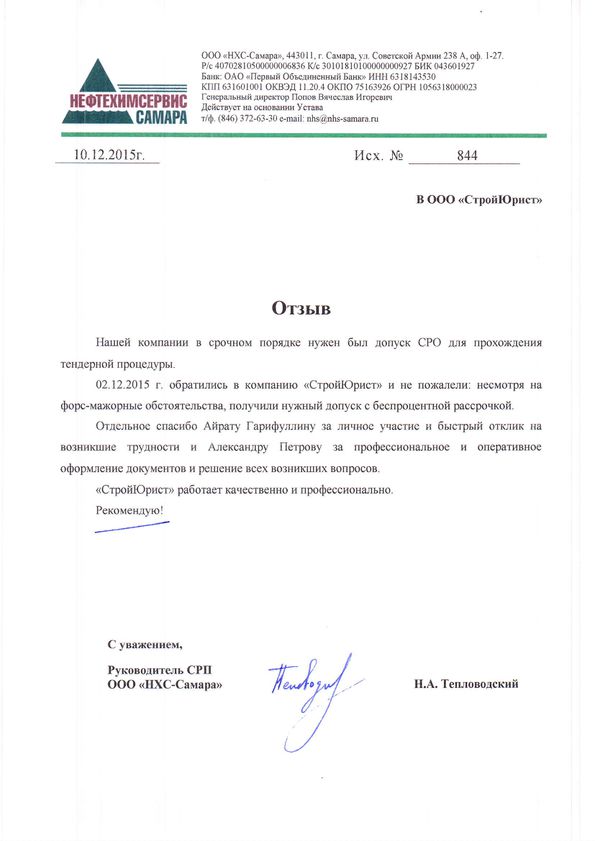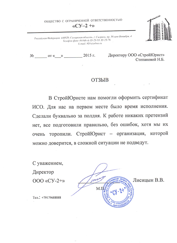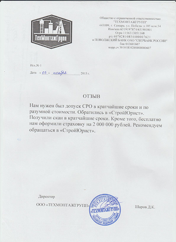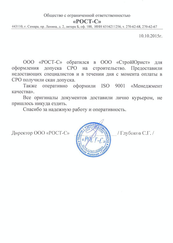 Отзывы клиентов "СтройЮрист" по вступлению в СРО в Севастополе