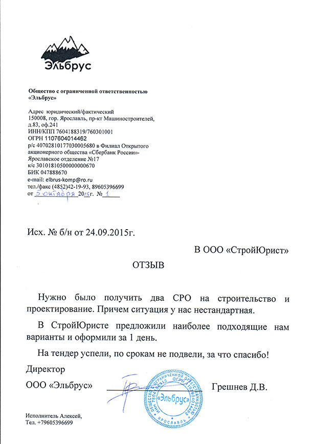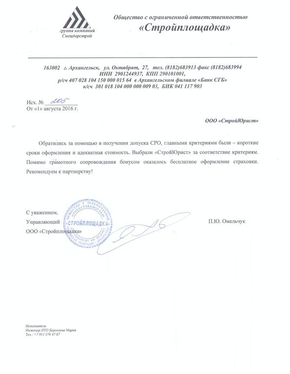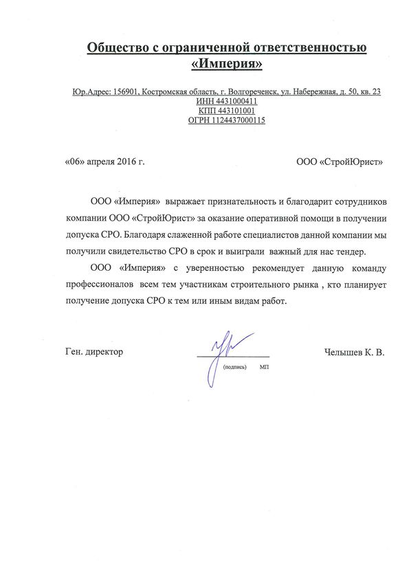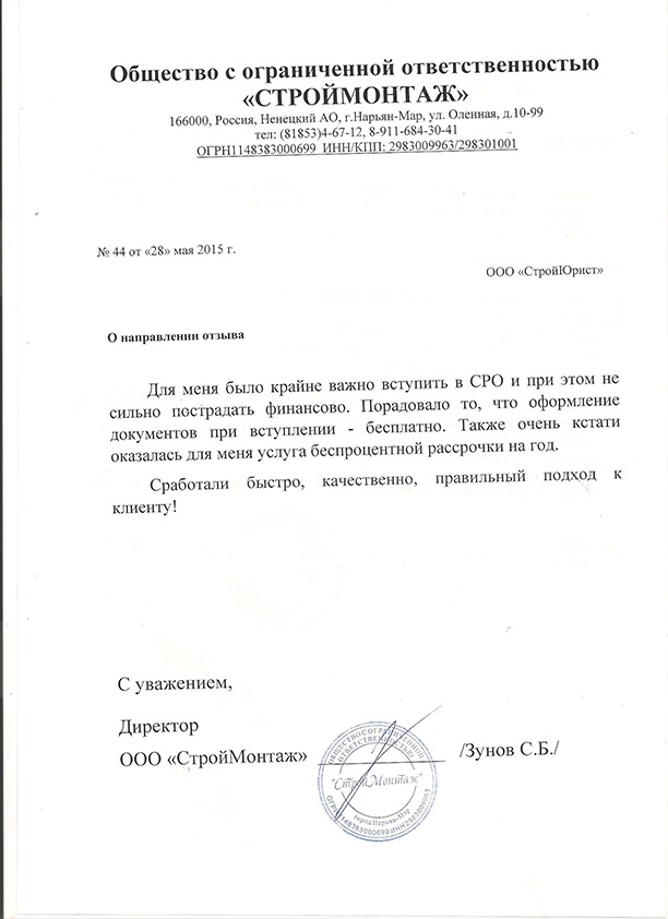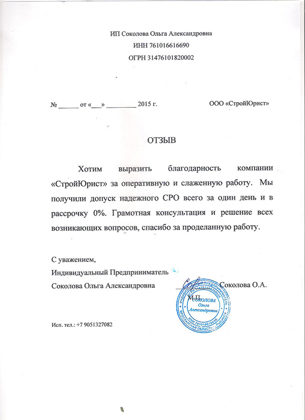 Отзывы клиентов "СтройЮрист" по вступлению в СРО в Севастополе
