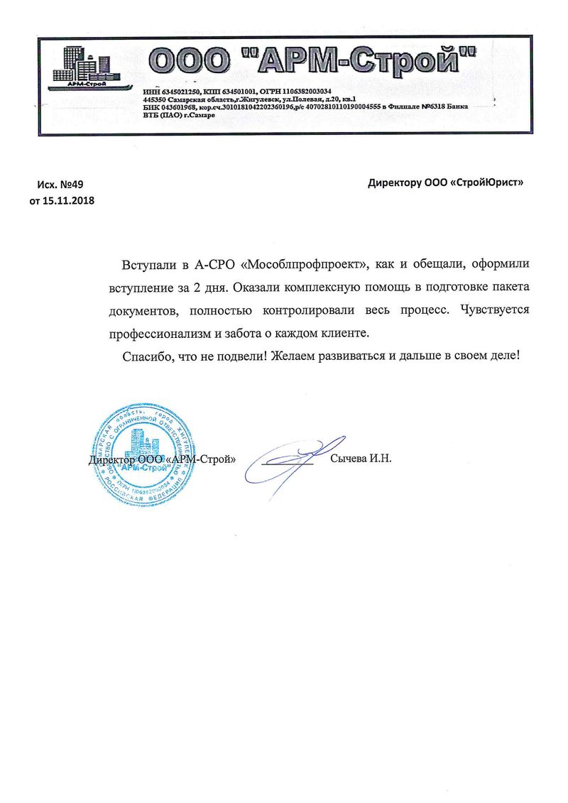 Отзывы клиентов "СтройЮрист" по вступлению в СРО в Севастополе