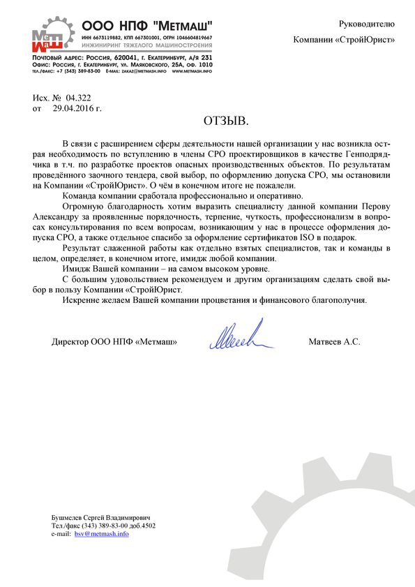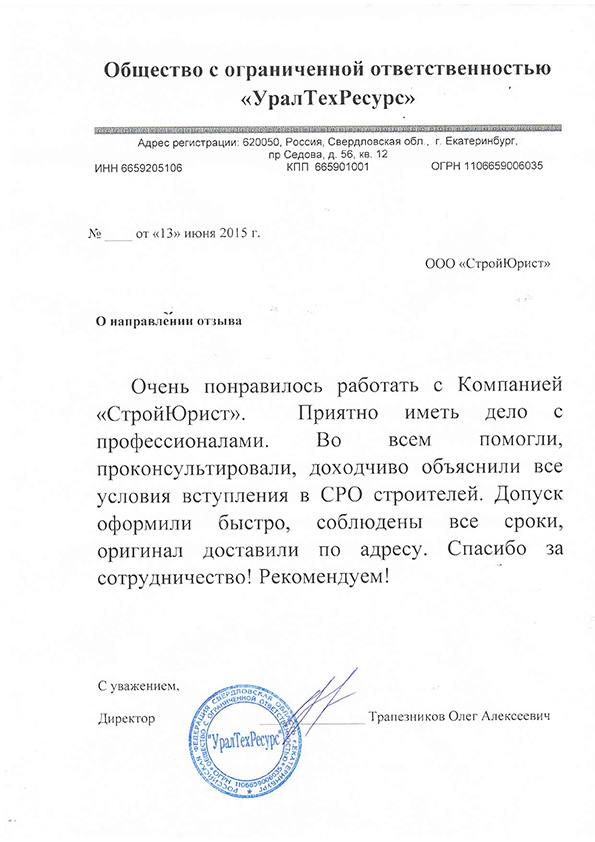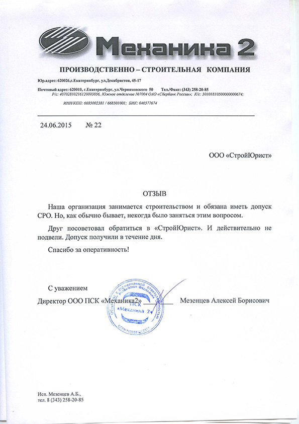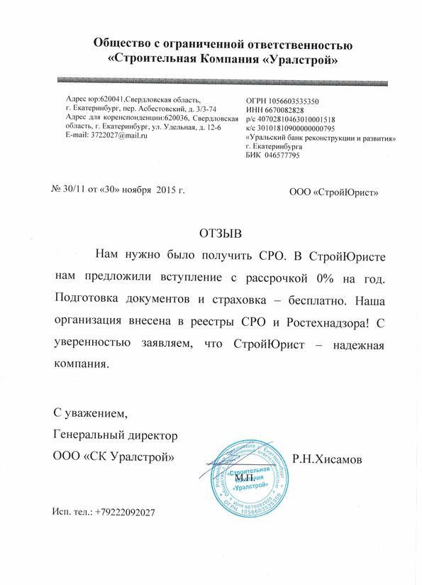 Отзывы клиентов "СтройЮрист" по вступлению в СРО в Севастополе