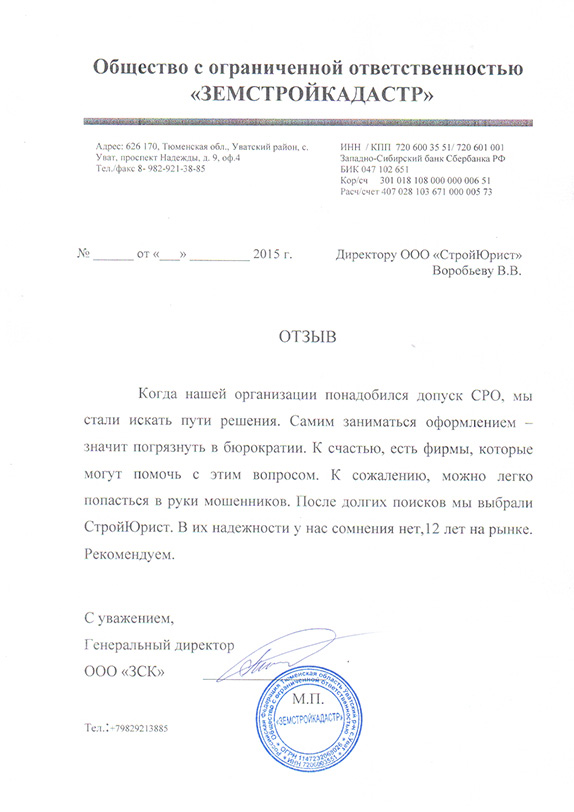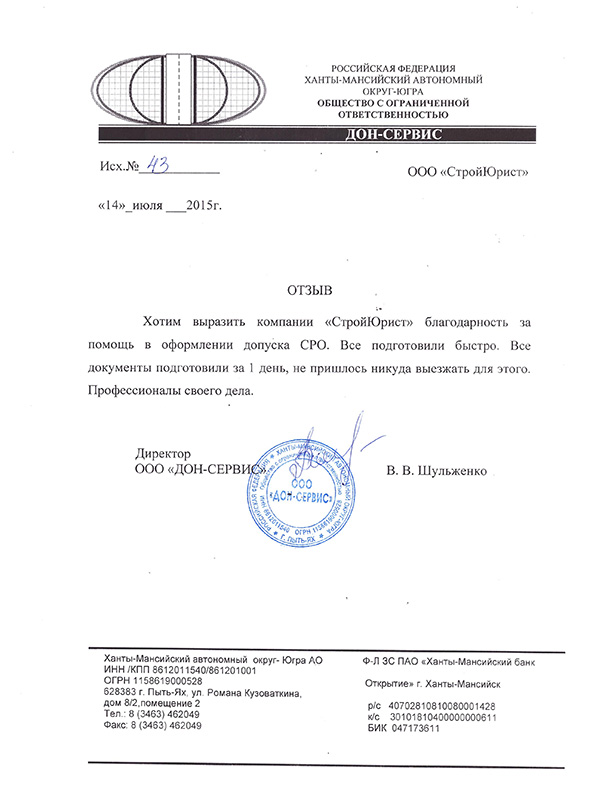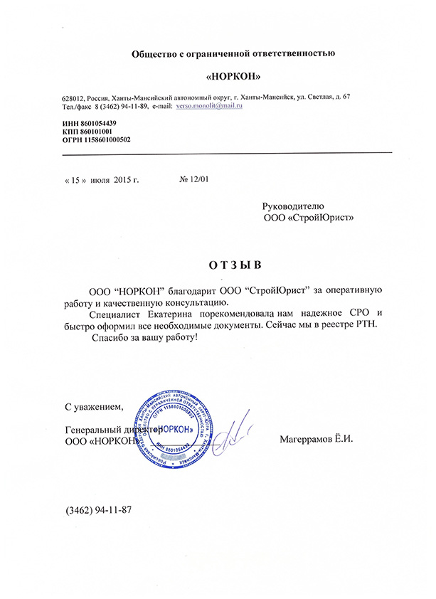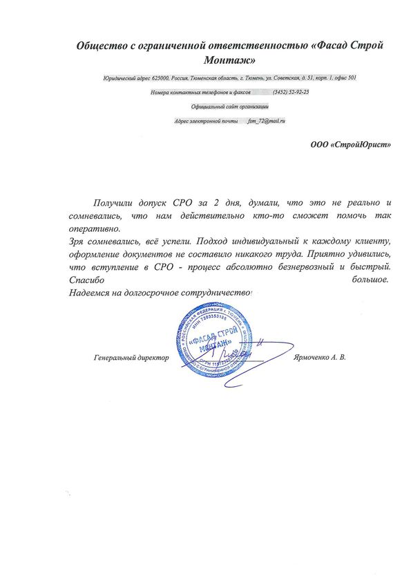 Отзывы клиентов "СтройЮрист" по вступлению в СРО в Севастополе