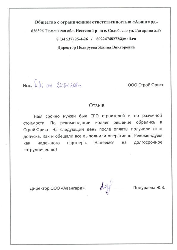 Отзывы клиентов "СтройЮрист" по вступлению в СРО в Севастополе