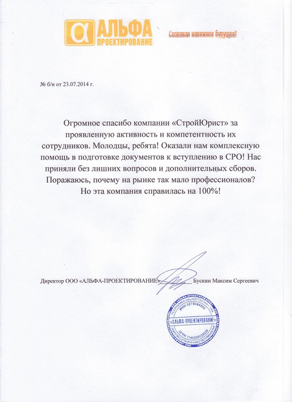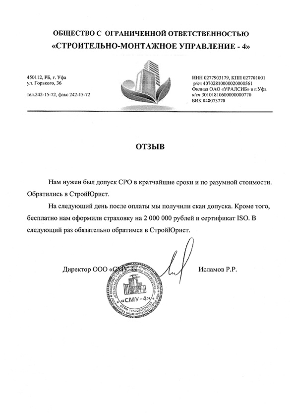 Отзывы клиентов "СтройЮрист" по вступлению в СРО в Севастополе
