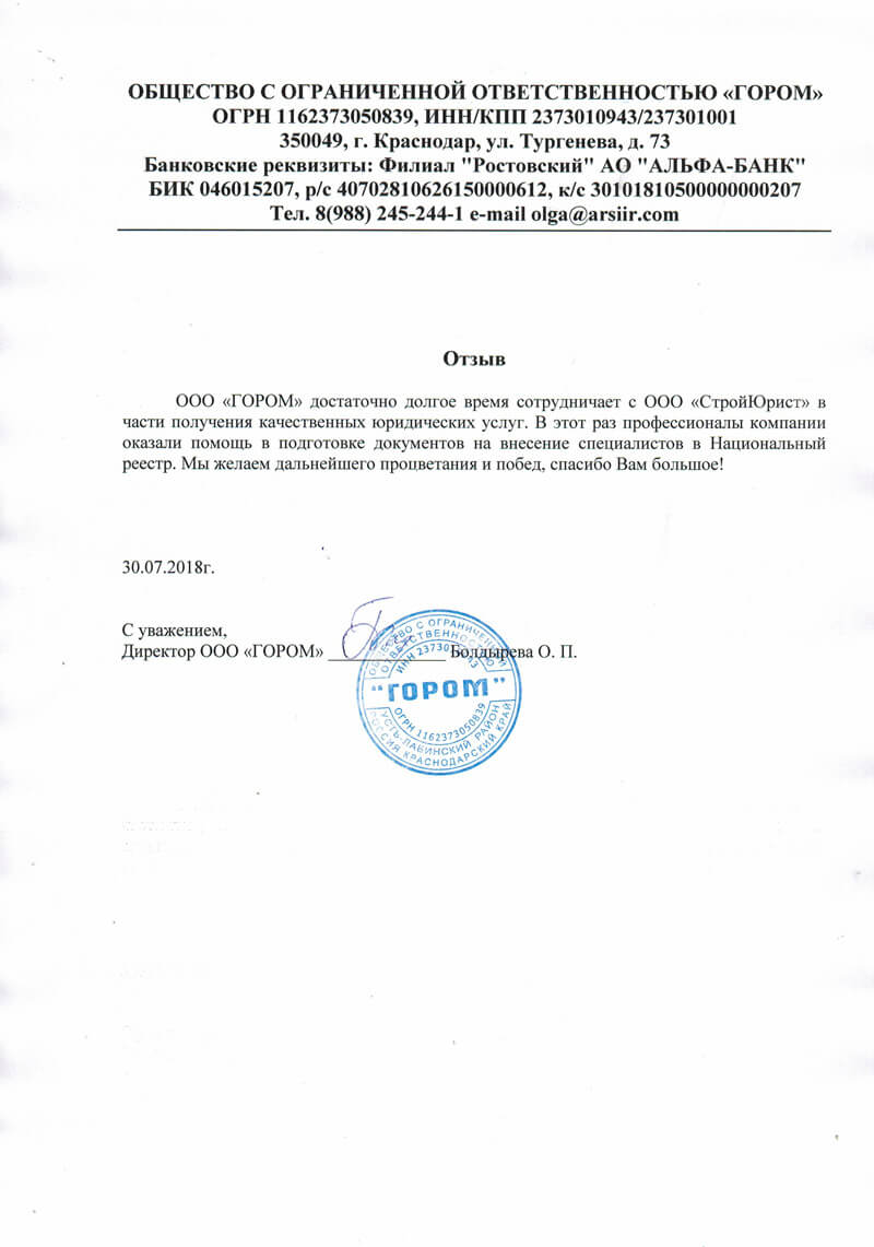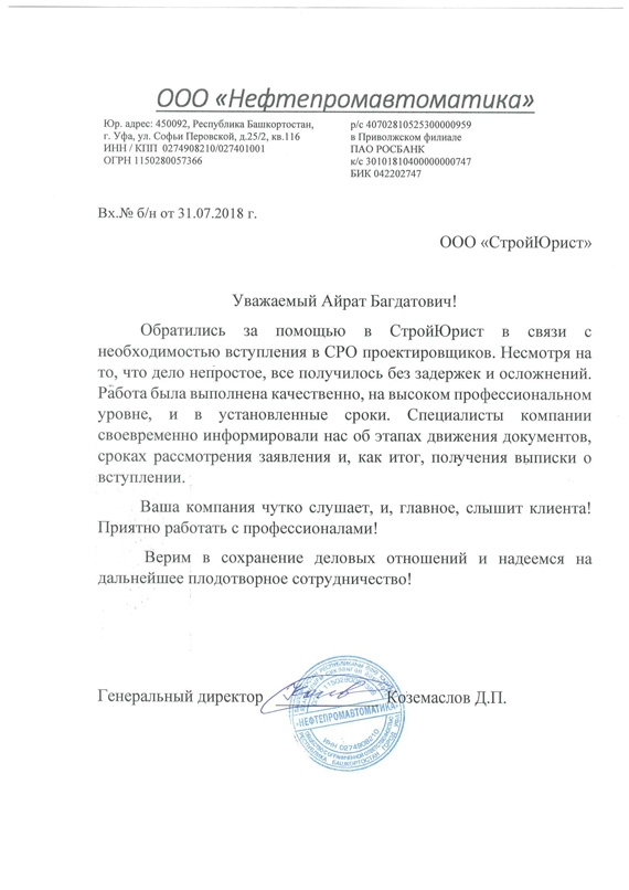 Отзывы клиентов "СтройЮрист" по вступлению в СРО в Севастополе