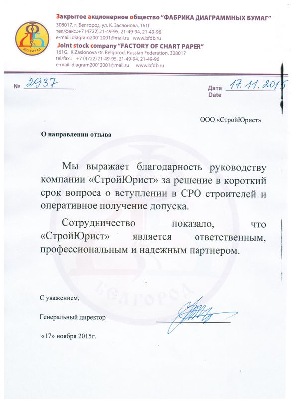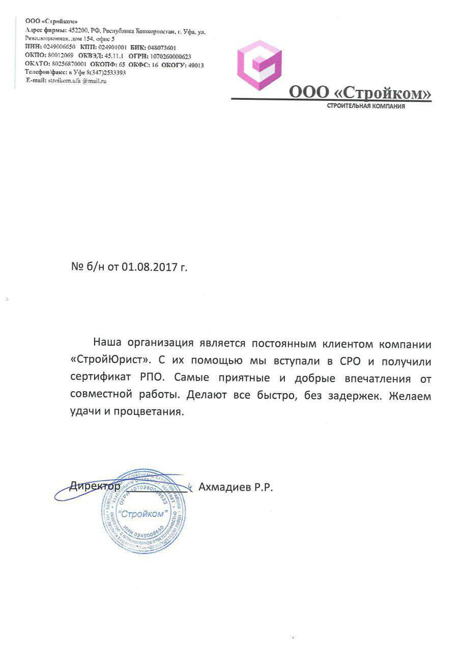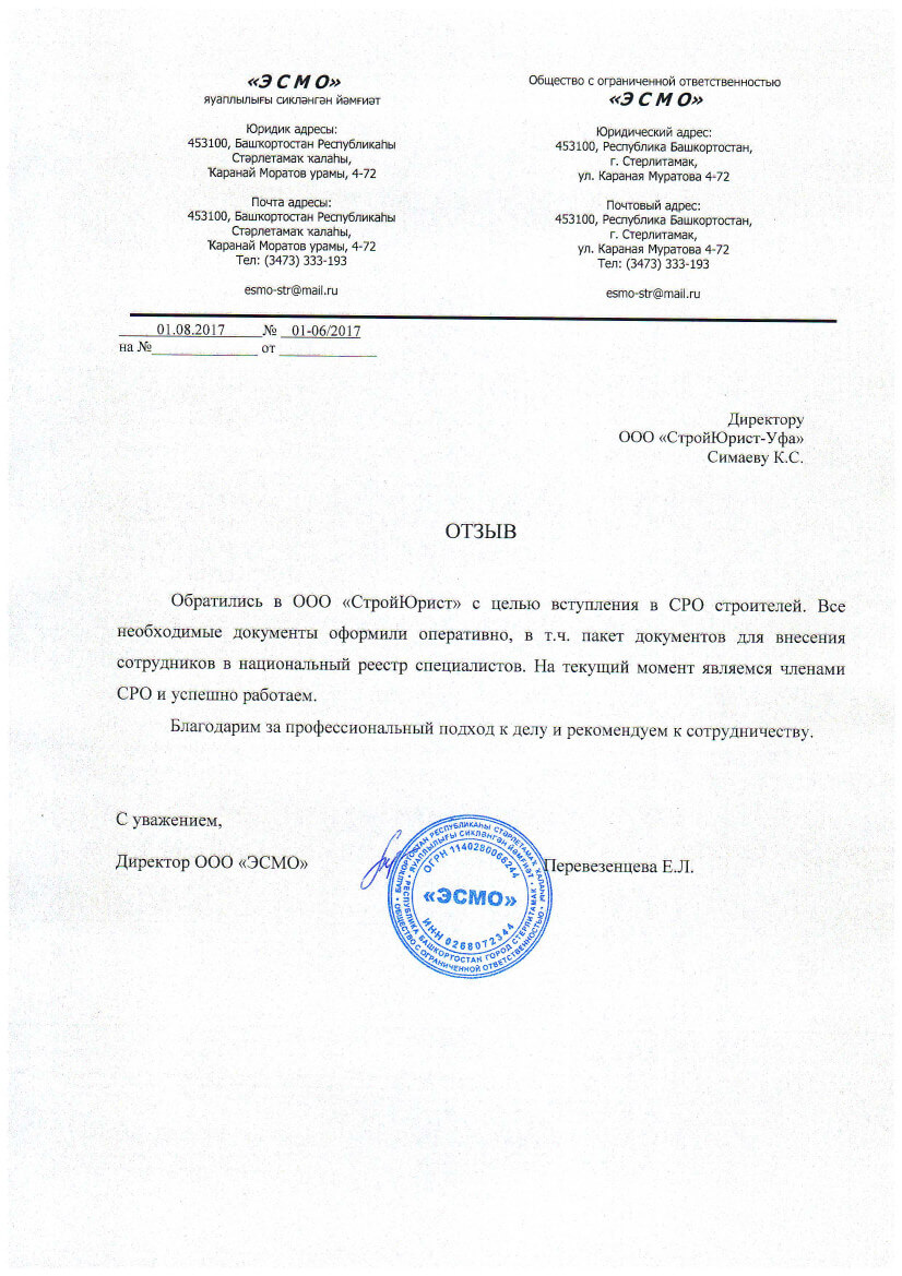 Отзывы клиентов "СтройЮрист" по вступлению в СРО в Севастополе